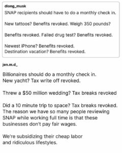 SNAP (Supplemental Nutrition Assistance Program) = the name was changed to “avoid the stigma” associated with using food stamps.
