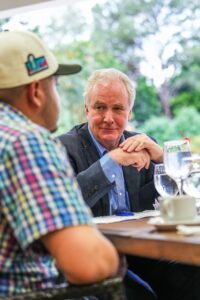 Finally, they went from, “No, you can’t see him.” With the Senator getting stopped by the military 2 miles from the prison, to sitting and having drinks in a nice location.
