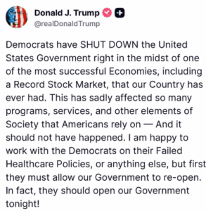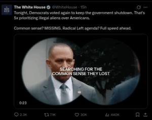 I struggle with the images of pie charts showing, “…60% of Americans are against the Democratic shut down of the government!” (X.com). Just like when the Left posts up this stuff, it’s a poll. It’s a fucking poll, and that poll means very little in the grand scheme of things. It’s the same pandering that the Left does, and it makes me angry. These kinds of statistics are entirely meaningless, as we’ve said over and over again about the Left. If it doesn’t mean shit on the Left, why does it suddenly mean something awesome on the Right? It doesn’t. It just doesn’t.