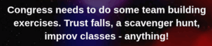 Another possible response to this kind of shenanigans by the government is to make it so that anytime there is a government shutdown, the entire Senate has to retire at the end of the current fiscal year, with no possibility of returning to DC or big government. Both sides. Yes, this gives a certain level of power to people… but only at the expense of their own positions. If someone wants another player out THAT badly, sure, make the whole shebang go down. It has to be something that really hurts the current sitting people, enough that they want to avoid it at all costs, but that allows for someone to fall on their metaphorical sword if there’s a problem that’s THAT big.